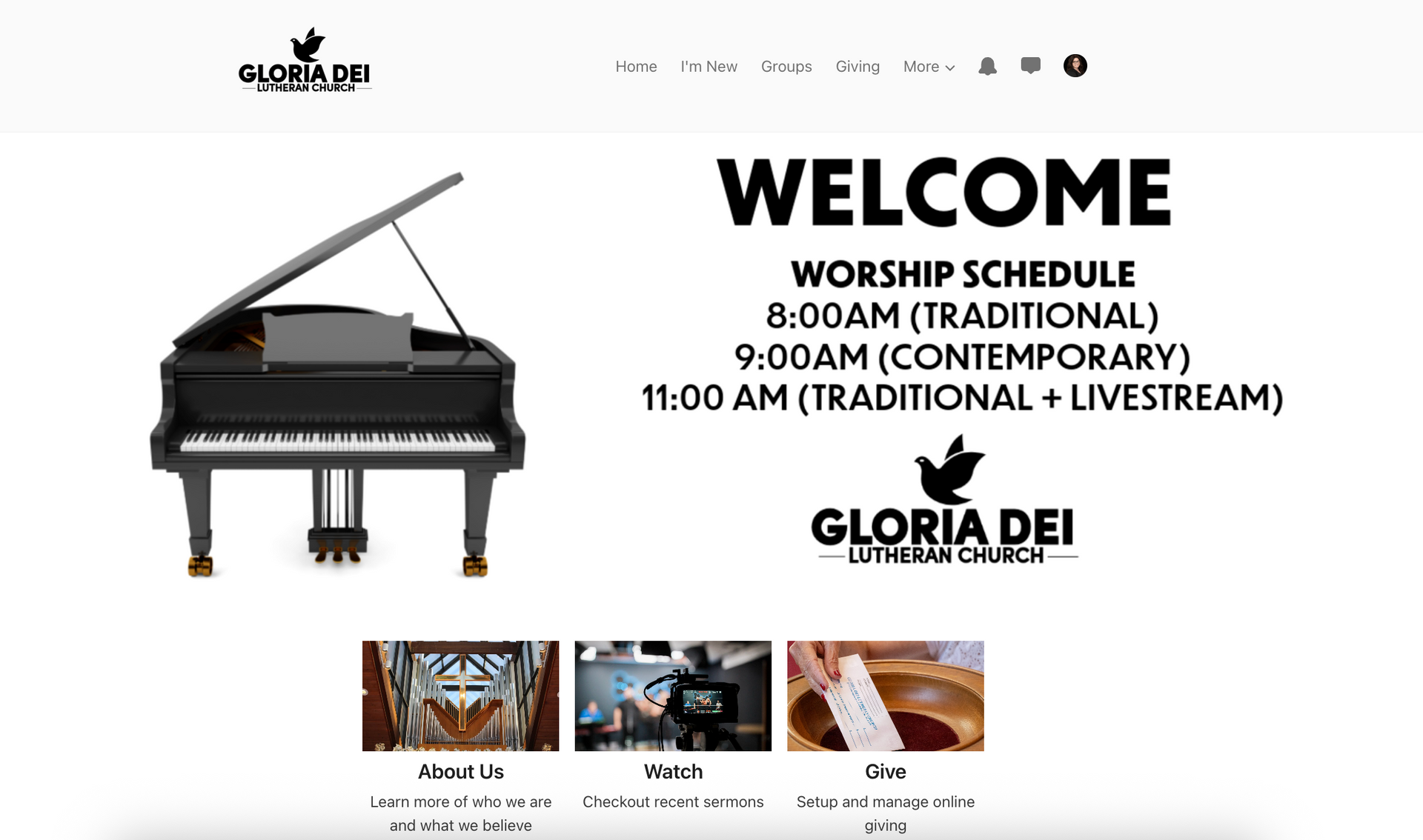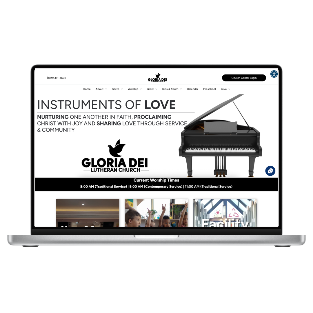 Gloria Dei Lutheran Church is a vibrant, multi-generational congregation rooted in faith and community. For years, the church relied on Church Center (part of Planning Center) as both its website and mobile app, which limited the ability to tell the church’s story, highlight its ministries, and create a welcoming first impression for visitors.