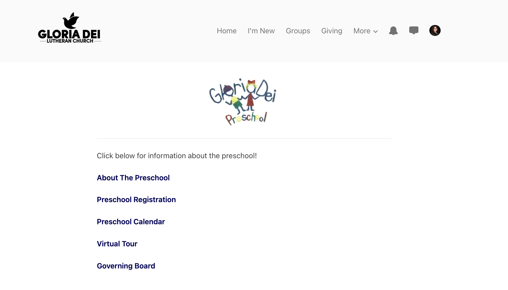 Website Before: Gloria Dei Lutheran Church Home Page (Church Center)