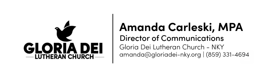 - Symbolism: In Christian symbolism, the dove represents the Holy Spirit, peace, and God’s presence. Its image is deeply rooted in Scripture — most notably in the Gospel accounts of Jesus’ baptism, where “the Spirit descended like a dove” (Matthew 3:16). Within the Evangelical Lutheran Church in America (ELCA), the dove is often used to signify the active presence of the Holy Spirit in the life of the Church. It reflects themes of renewal, comfort, and guidance, all central to Lutheran theology. For Gloria Dei, the dove also speaks to the congregation’s identity: a welcoming, Spirit-led community that seeks to share Christ’s peace with the world. As part of the new visual identity, the dove serves as both a recognizable Christian symbol and a timeless design element that communicates openness, hope, and unity.