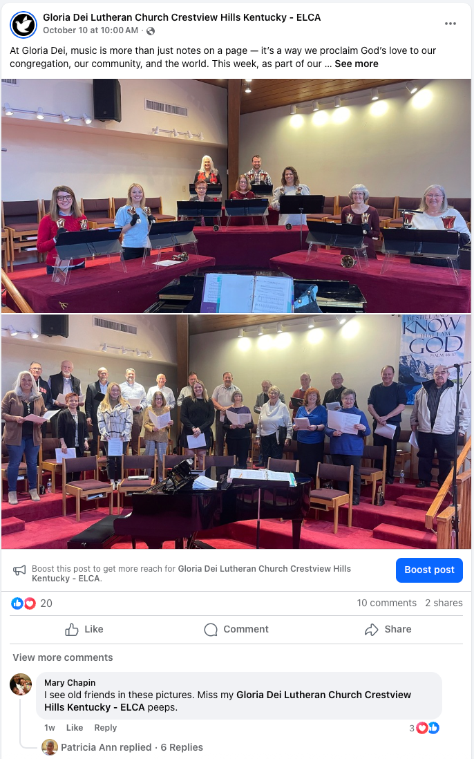 Current members of the congregation; non-members who visit our Facebook page.