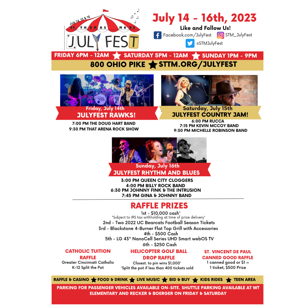The July Fest is St. Thomas More’s annual summer community festival, bringing families and neighbors together for food, music, and fellowship. As Marketing Chair, I was responsible for promoting the event across digital and print channels to maximize awareness and attendance.