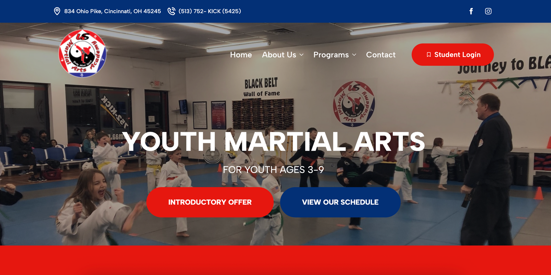 In 2024, I led the complete redesign of the U.S. Martial Arts Academy website to bring it up to modern standards, improve usability, and better reflect the academy’s vibrant community. The previous website was outdated, lacked essential program information, had minimal imagery, and did not convey the welcoming, high-energy atmosphere of the academy.